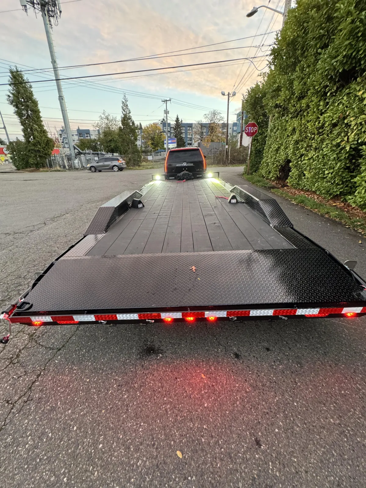 Fast, smooth loading for cars, buggies, or side-by-sides. The roll-over fenders, electric brakes, and long 20’ deck make loading safe and effortless. Clean, dependable, and ready for 24/7 contactless pickup.